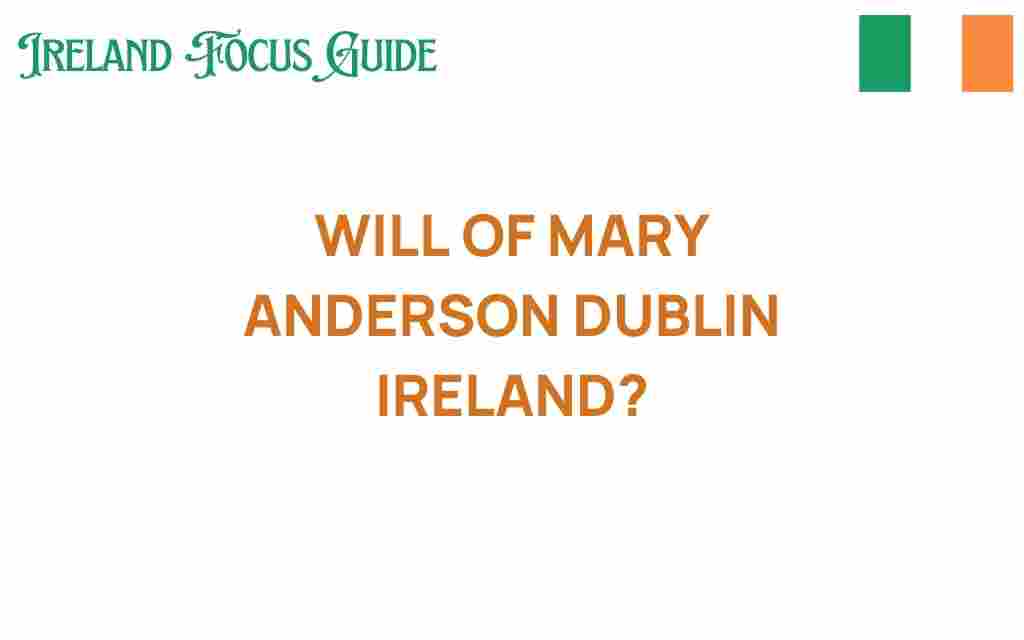 Mary Anderson, a name that resonates with rich historical significance in Dublin, Ireland, has left a legacy that continues to inspire local interest and intrigue. Her will, a document that encapsulates her values, beliefs, and desires for her estate, offers a fascinating glimpse into the social fabric of her time. This article delves into the history surrounding Mary Anderson, the implications of her will, and the lasting cultural impact of her legacy on Dublin and beyond.